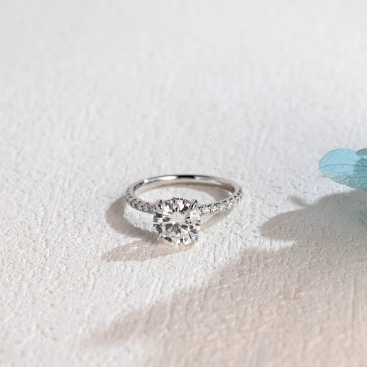 Solid Gold Round Moissanite Engagement Ring Hidden Halo, Pave Ring