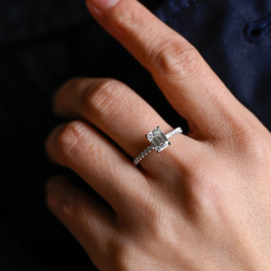 Solid Gold Emerald Cut Moissanite Engagement Ring with Hidden Halo, Promise Ring, Gift for Women Wife