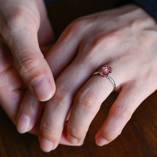CausYou Solid Gold Tulip Oval Cut Lab Grown Pink Sapphire Engagement Ring