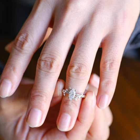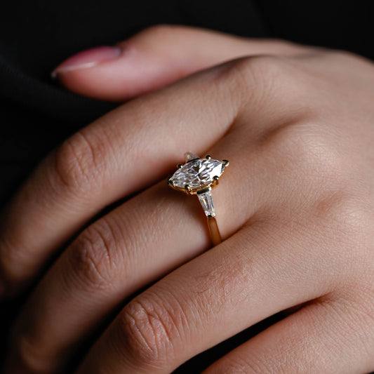 Solid Gold Solitaire Marquise Cut Moissanite Engagement Ring