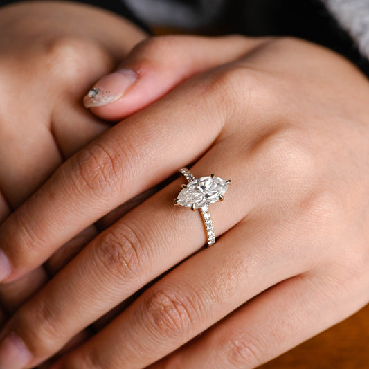 Solid Gold Marquise Cut Moissanite Engagement Ring, Paved Promise Ring, Proposal Ring, Gift for Women Wife