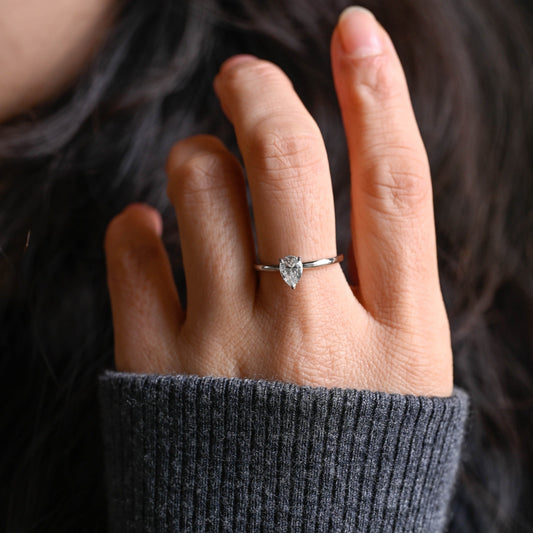 Solid Gold Solitaire Pear Cut Moissanite Engagement Ring