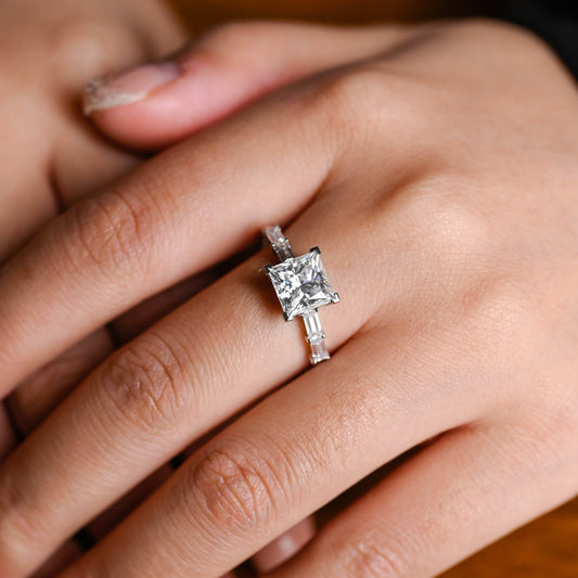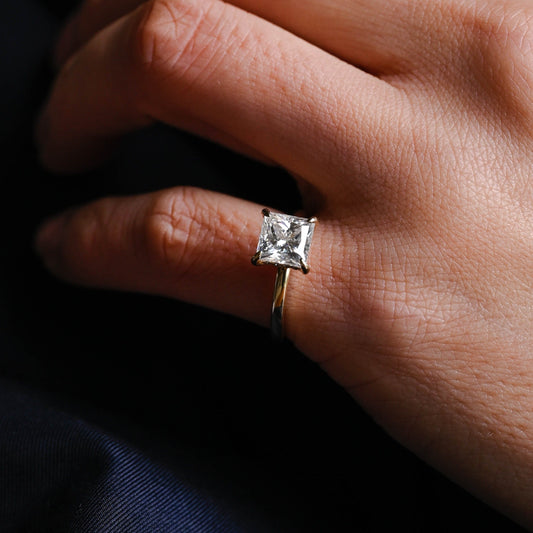 Solid Gold Hidden Halo Princess Cut Moissanite Engagement Ring