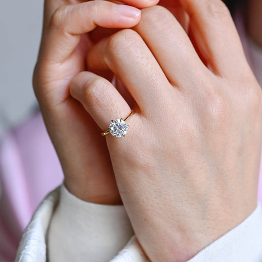 Solid Gold Round Cut Moissanite Engagement Ring Hidden Halo