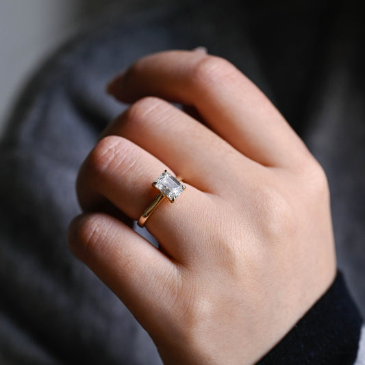Solid Gold Solitaire Emerald Cut Moissanite Engagement Ring