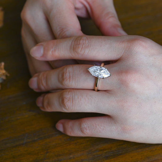 Solid Gold Solitaire Two Tone Marquise Cut Moissanite Engagement Ring