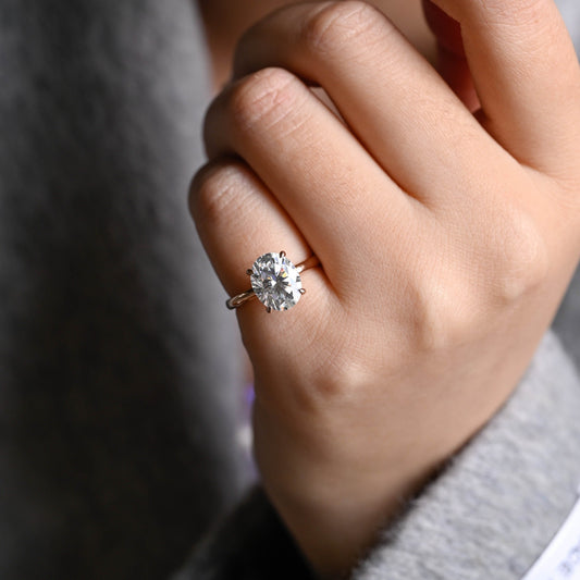 Solid Gold Solitaire Oval Cut Moissanite Engagement Ring