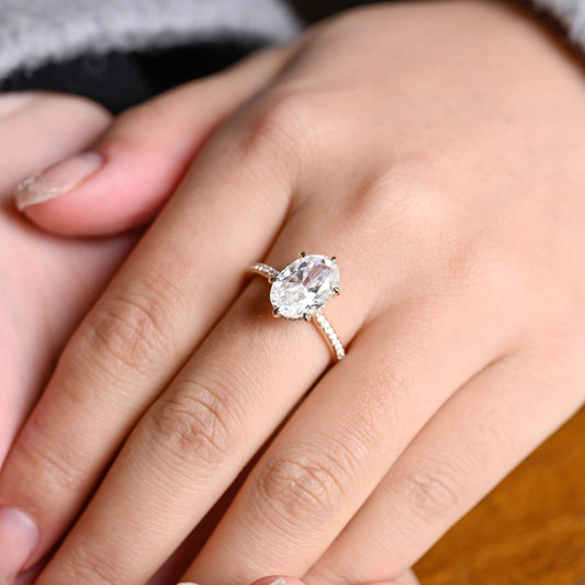 Solid Gold Floating Hidden Halo Oval Cut Moissanite Engagement Ring