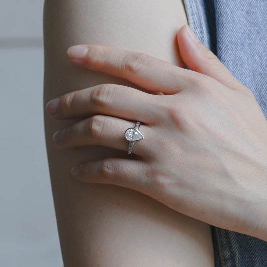 Solid Gold Unique Bezel Pear Cut Moissanite Engagement Ring