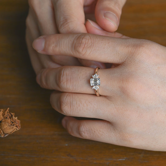 Solid Gold Cluster Emerald Cut Moissanite Engagement Ring