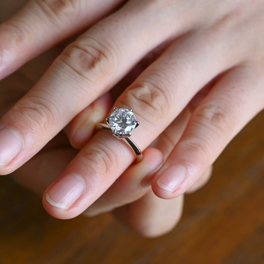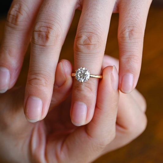 Solid Gold Round Cut Moissanite Engagement Ring, Solitaire Tulip Ring