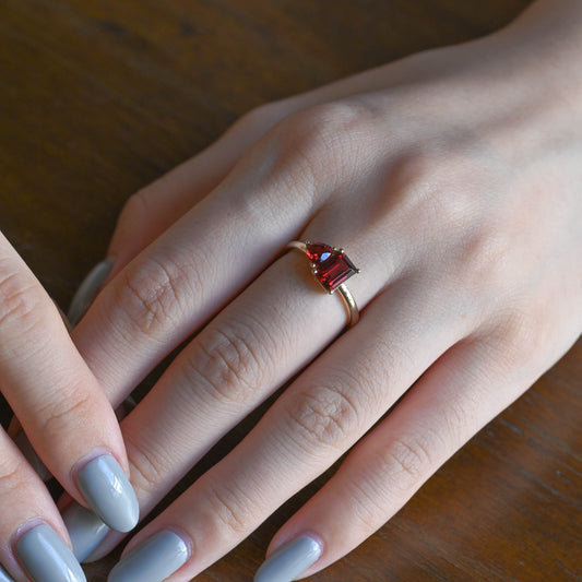 Solid Gold Toi Et Moi Emerald Cut & Trillion Cut Garnet Engagement Ring