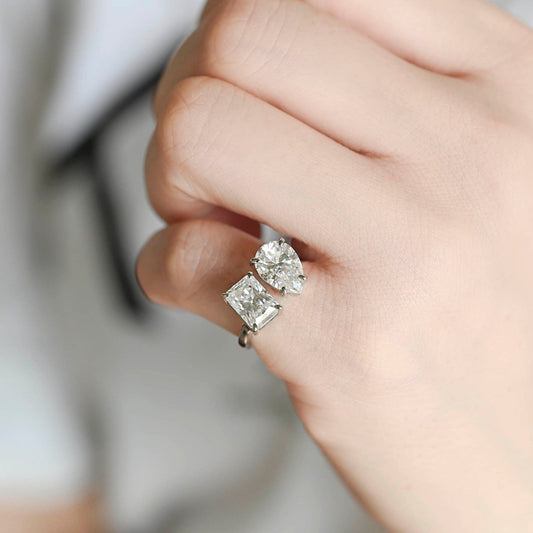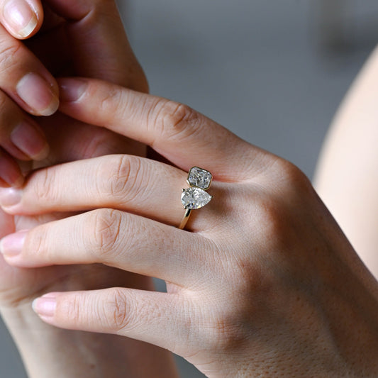 CausYou Solid Gold D/VS1 Toi et Moi Lab Grown Diamond Ring, Asscher Engagement Ring, Pear Wedding Ring