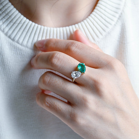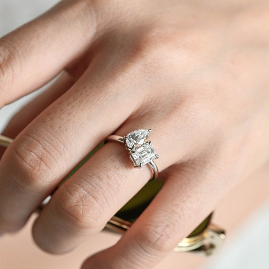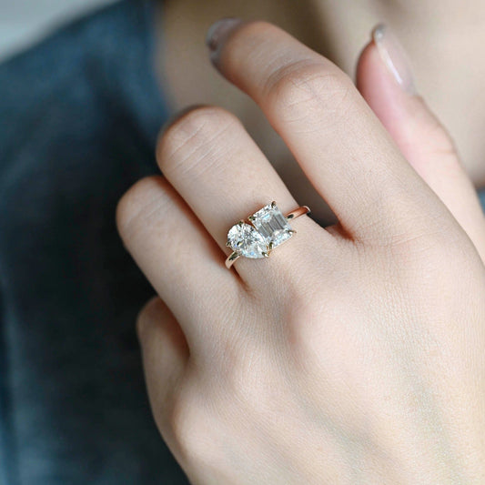 Solid Gold D/VS1 Toi et Moi Ring, Emerald & Pear Cut Lab Grown Diamond Engagement Ring, Promise Ring