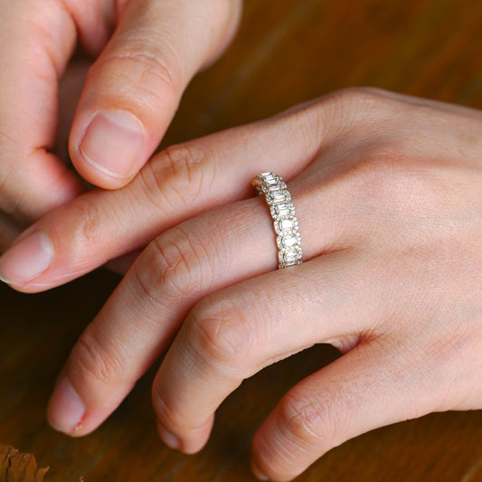 Solid Gold Full Eternity Emerald Cut Wedding Band