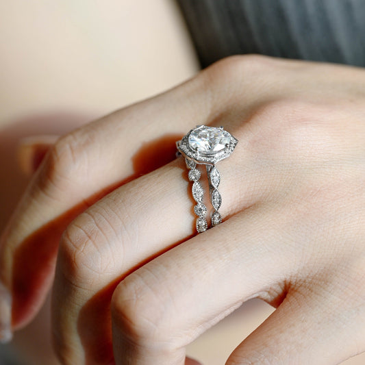 Solid Gold Curved Marquise & Round Cut Moissanite Wedding Band