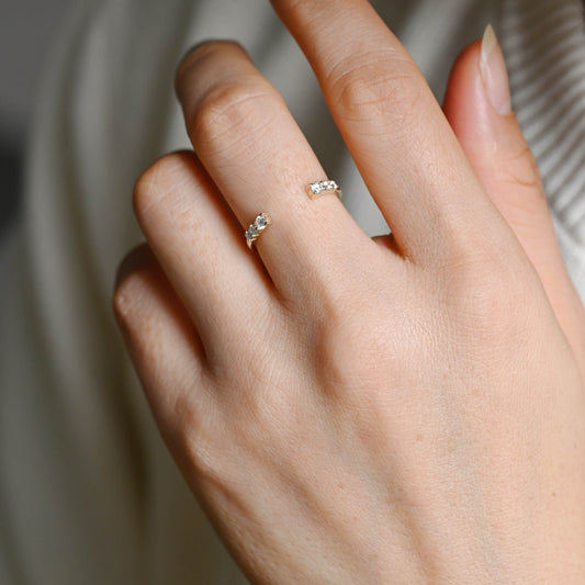 Solid Gold Open Cuff Round Cut Moissanite Wedding Band
