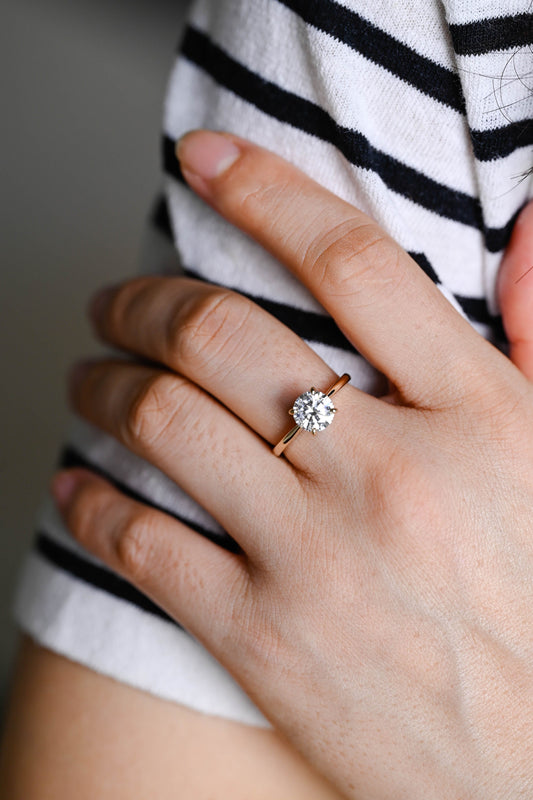 Solid Gold D/VS1 Cathedral Tulip Setting Round Cut Lab Grown Diamond Engagement Ring