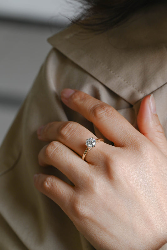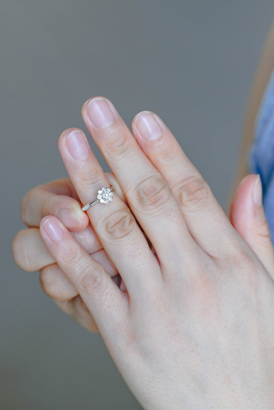 Solid Gold D/VS1 Flower Round Cut Lab Grown Diamond Engagement Ring