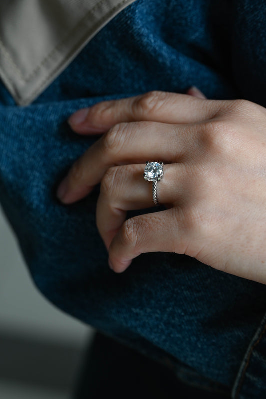 Solid Gold D/VS1 Curved Band Round Cut Lab Grown Diamond Engagement Ring