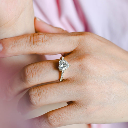 CausYou Solid Gold D/VS1 Heart Cut Lab Grown Diamond Engagement Ring, Pave Wedding Bridal Ring