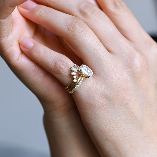 Solid Gold Oval Cut Trio Engagement Ring and Wedding Ring Set