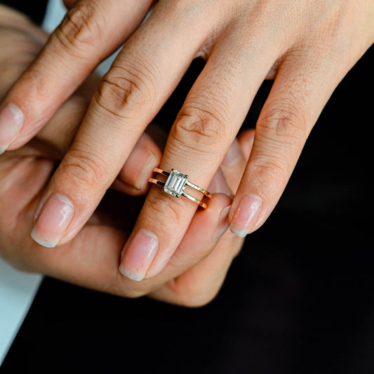 CausYou Solid Gold D/VS1 Double Band Emerald Cut Lab Grown Diamond Engagement Ring