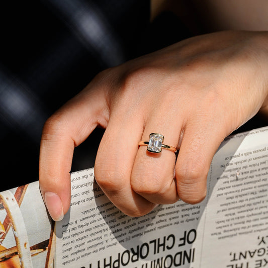 CausYou Solid Gold D/VS1 Half Bezel Emerald Cut Lab Grown Diamond Engagement Ring, Solitaire Bridal Promise Ring