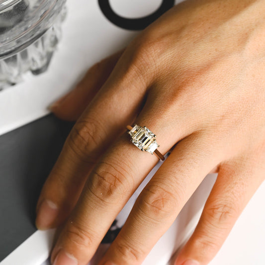 Solid Gold D/VS1 Lab Grown Emerald Cut Diamond Engagement Ring, Three Stone Promise Ring