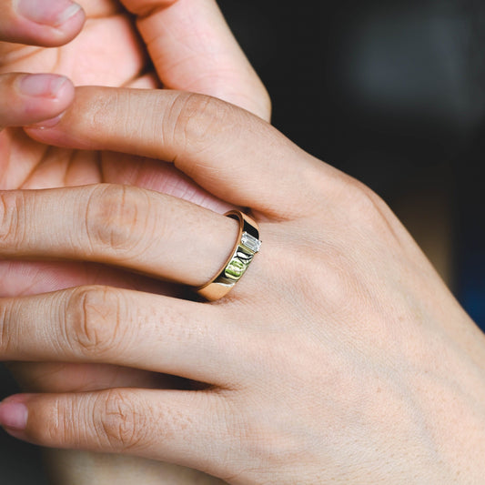 CausYou Solid Gold Emerald Cut Lab Grown Diamond Wedding Band, Cigar Band Engagement Ring for Men