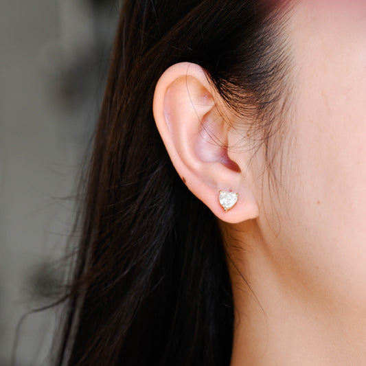CausYou Solid Gold Heart Cut Moissanite Earrings Studs, Minimalist Earrings Studs, Engagement Gift for Women Wife