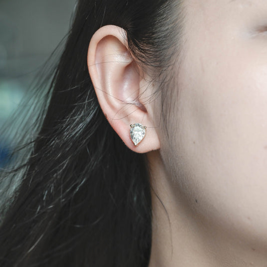CausYou Solid Gold Pear Cut Moissanite Earrings Studs, Solitaire Teardrop Studs Wedding Accessories for Women Wife