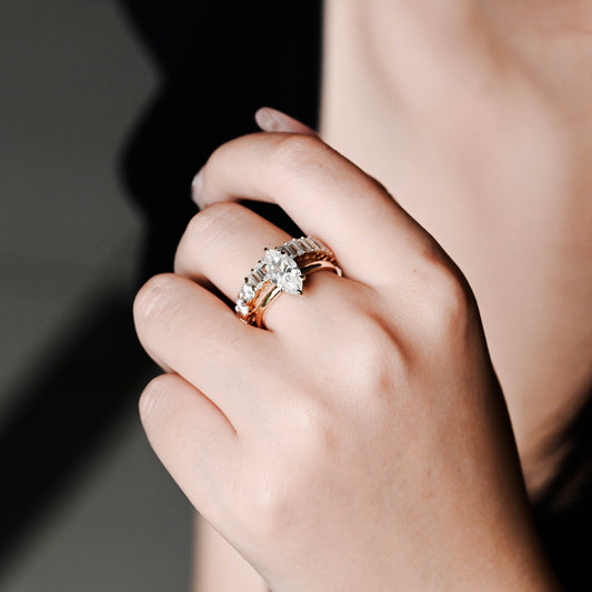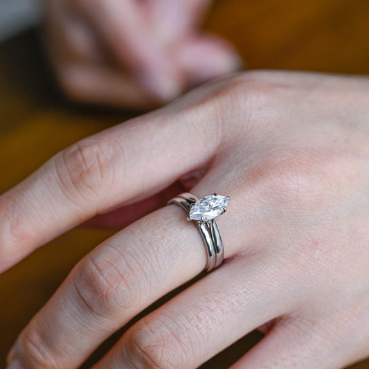 Solid Gold Solitaire Marquise Cut Moissanite Engagement Ring Set