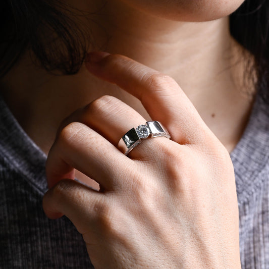 Solid Gold Round Moissanite Matte-Polish Double Layer Mens Ring