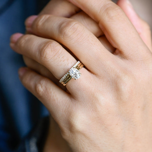 Solid Gold Oval Cut Moissanite Engagement Ring and Wedding Ring Set