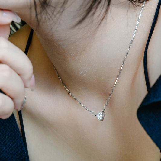 CausYou Solid Gold Heart Shaped Pendant, Round Cut Moissanite Necklace, Simple Accessories for Women