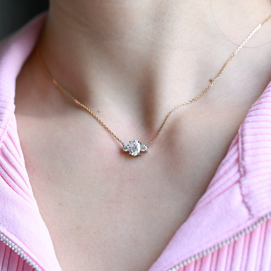 Solid Gold Oval Cut Moissanite Pendant, Wedding Necklace, Anniversary Gift for Women, Wife