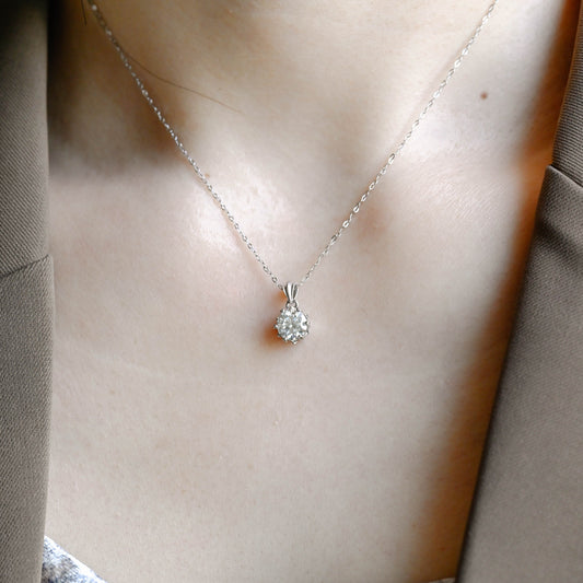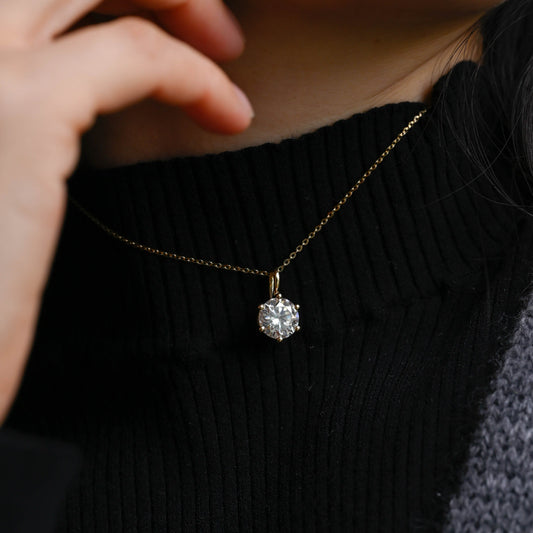 CausYou Solid Gold Round Cut Moissanite Pendant, Wedding Necklace, Anniversary Gift for Woman, Wife