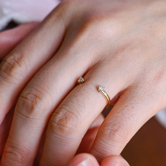 CausYou Solid Gold Round Cut Moissanite Wedding Band, Open Ring Cuff Ring