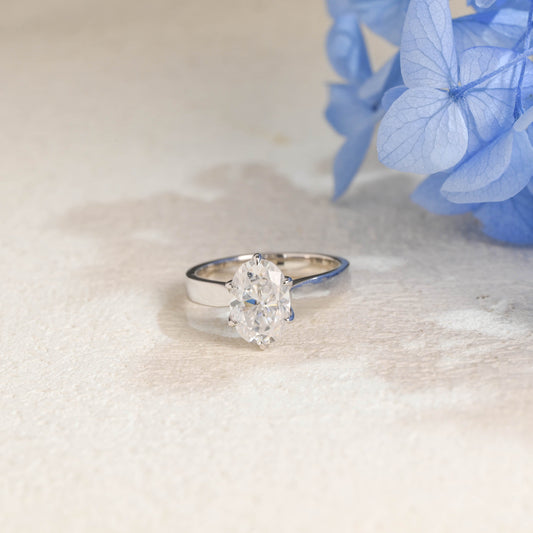 Solid Gold Two Tone 3mm Width Oval Cut Moissanite Engagement Ring