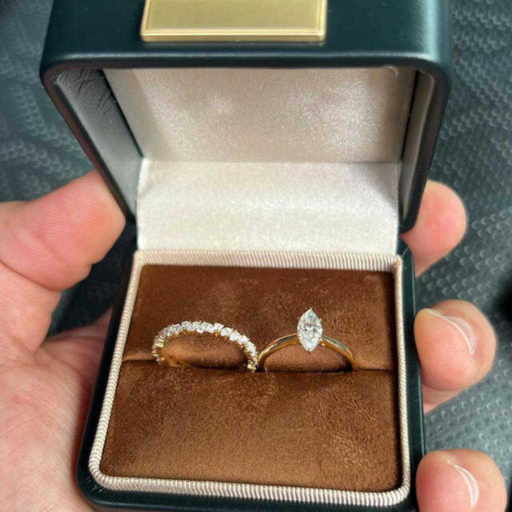 Gorgeous ring set! My fiancée fell in love with this set when the seller was on a different platform, and we were excited to see it on this website. It’s as lovely as the photos show! We ordered a 1 ct stone. Shipping was fast, and rings were received within three weeks of ordering (shipped to U.S., ordered in Feb). The complimentary engraving was a sweet touch.