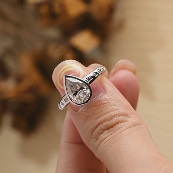 Solid Gold Unique Bezel Pear Cut Moissanite Engagement Ring