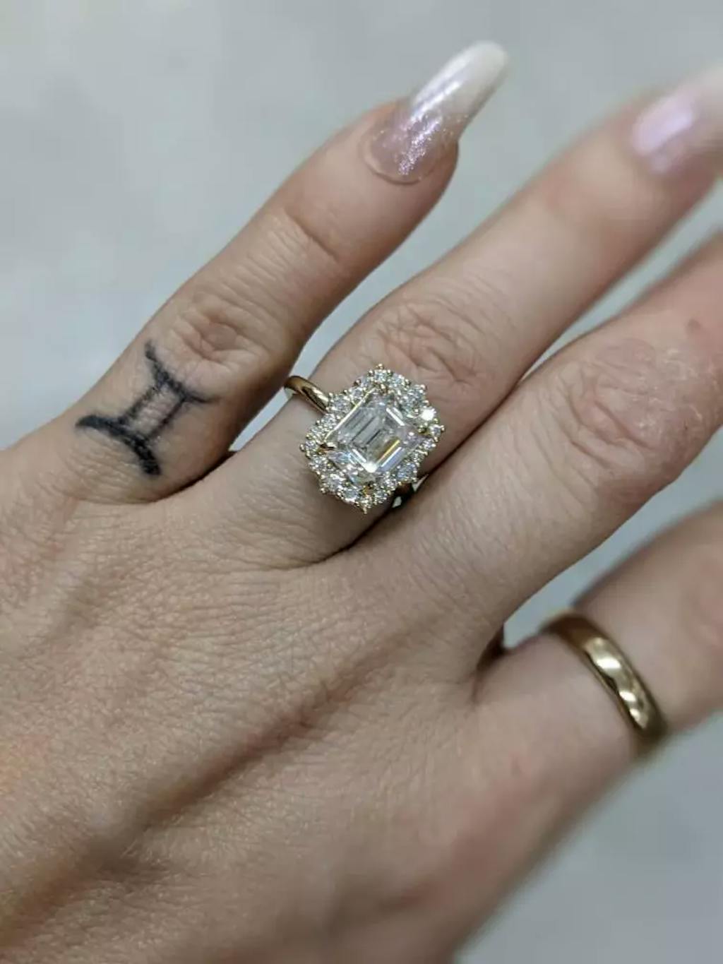 Solid Gold Halo Emerald Cut Moissanite Engagement Ring